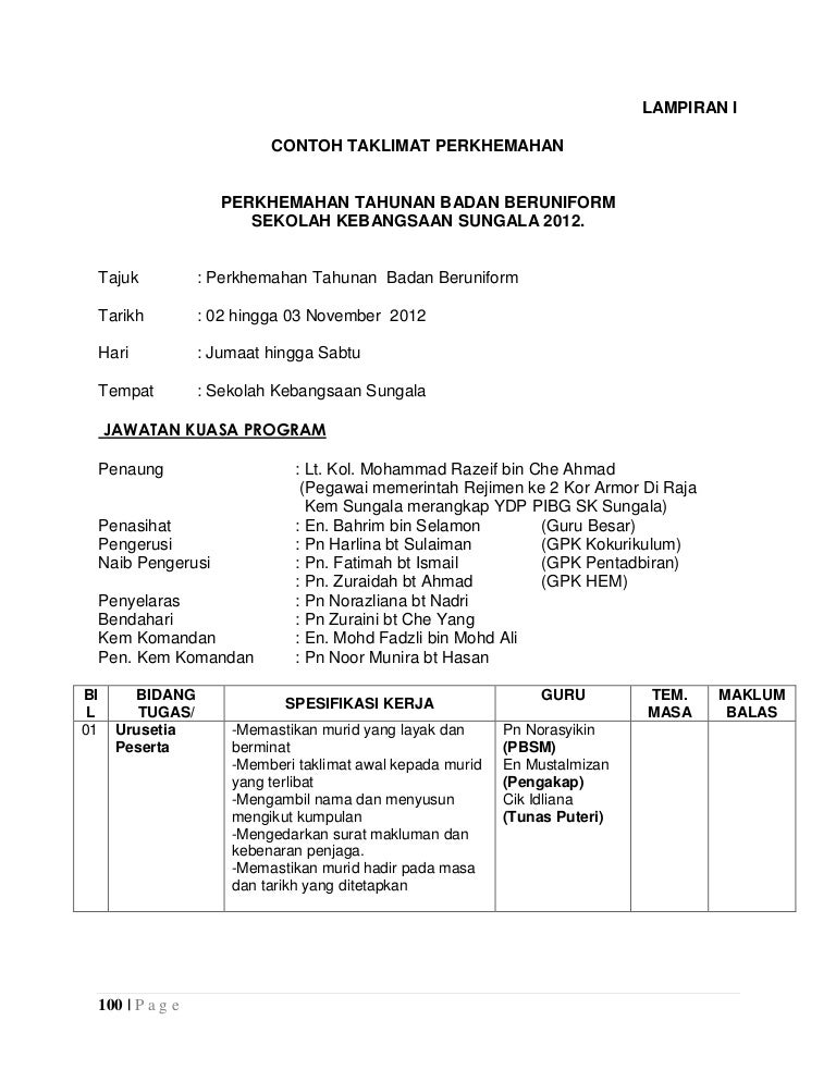 Doc Kertas Kerja Perkhemahan Bersepadu Ko Kurikulum Sk Ulu Sungai Raub Faizal Sham Academia Edu