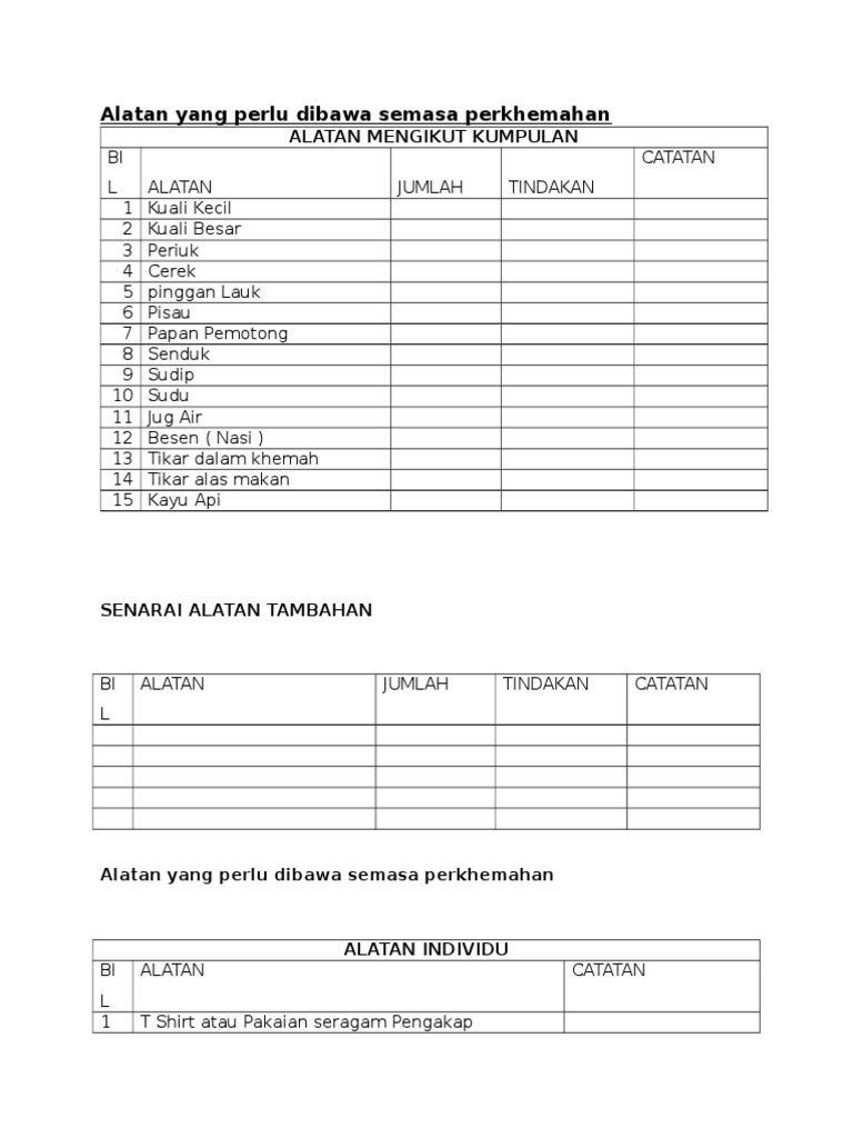 Alatan Yang Perlu Dibawa Semasa Perkhemahan Pdf