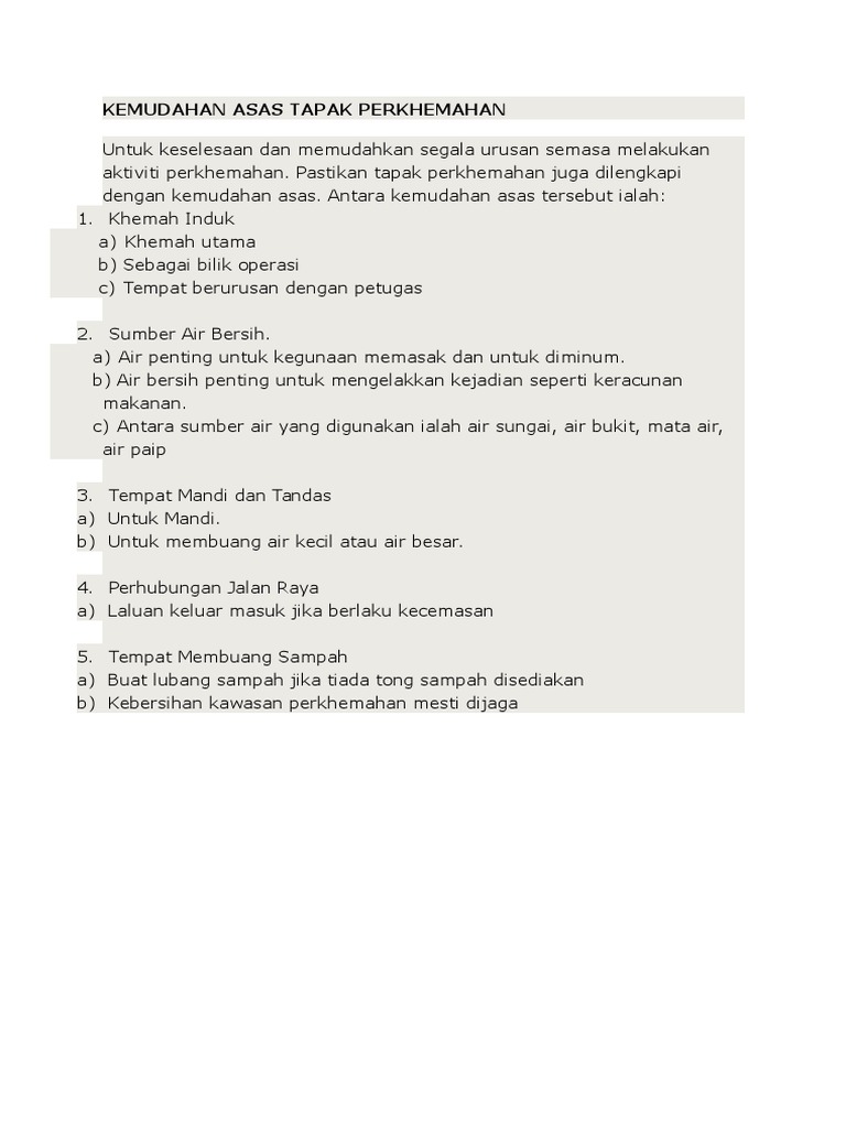 Kemudahan Asas Tapak Perkhemahan Pdf